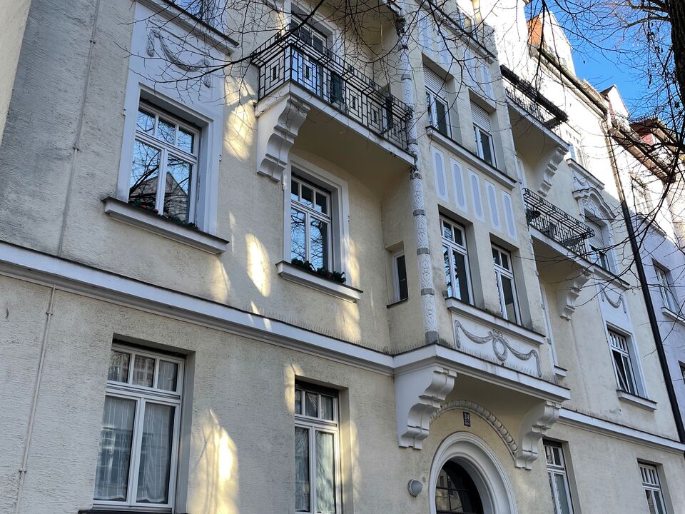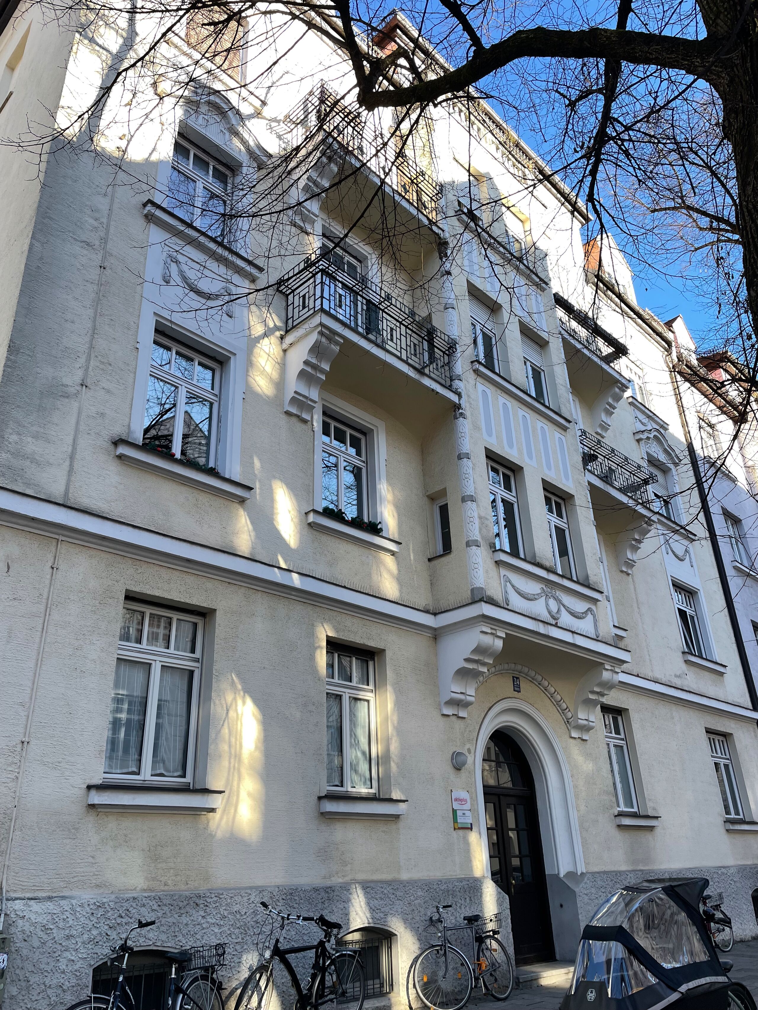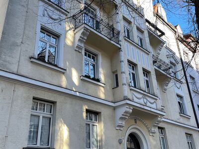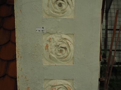 Im Rahmen der denkmalgerechten Restaurierung werden beschädigte Zierelemente sorgfältig nachgebildet. Dabei orientiert sich die Rekonstruktion an Bestandsresten, um das ursprüngliche Erscheinungsbild des Jugendstilbaus möglichst authentisch wiederherzustellen.