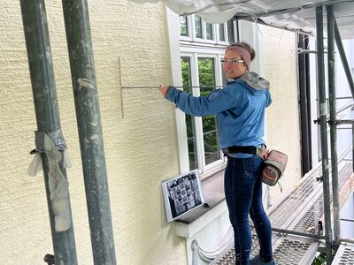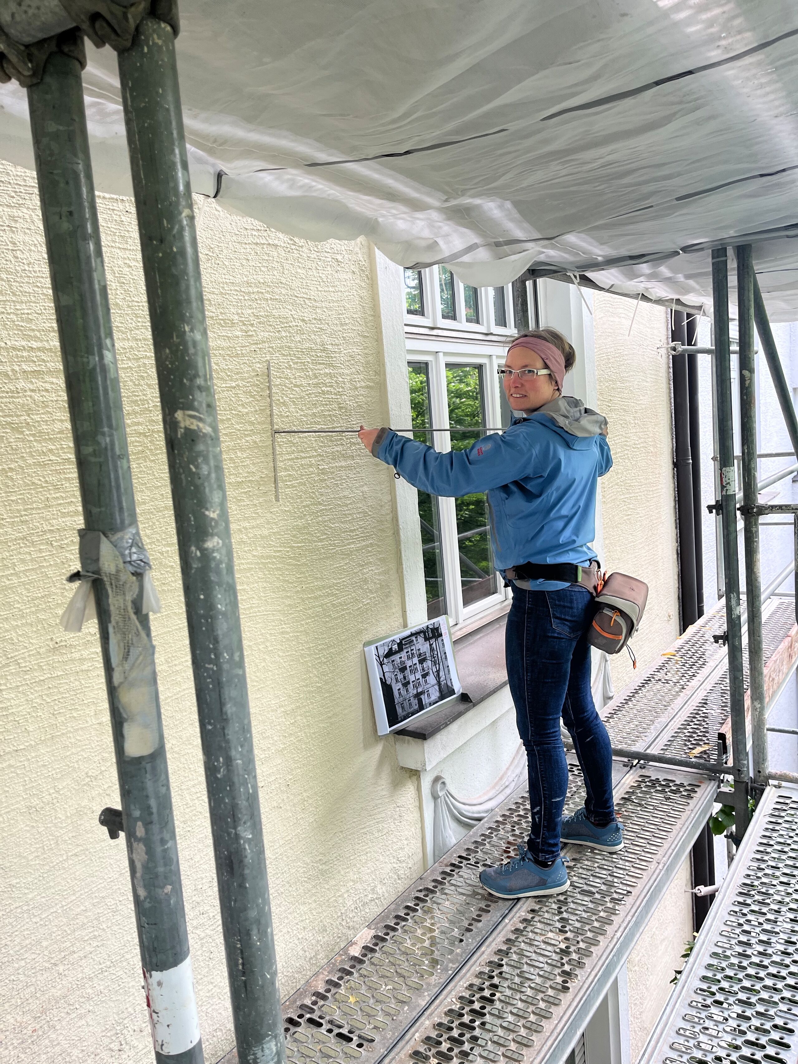Es wurde entschieden, die Fassadensanierung des Vorderhauses gemeinsam mit dem Rückgebäude durchzuführen, das mit dem Vorderhaus verbunden ist. Das Rückgebäude weist insgesamt einen besseren Erhaltungszustand auf. Dort sind lediglich kleinere Putzreparaturen erforderlich, gefolgt von einem vollständigen Fassadenanstrich.